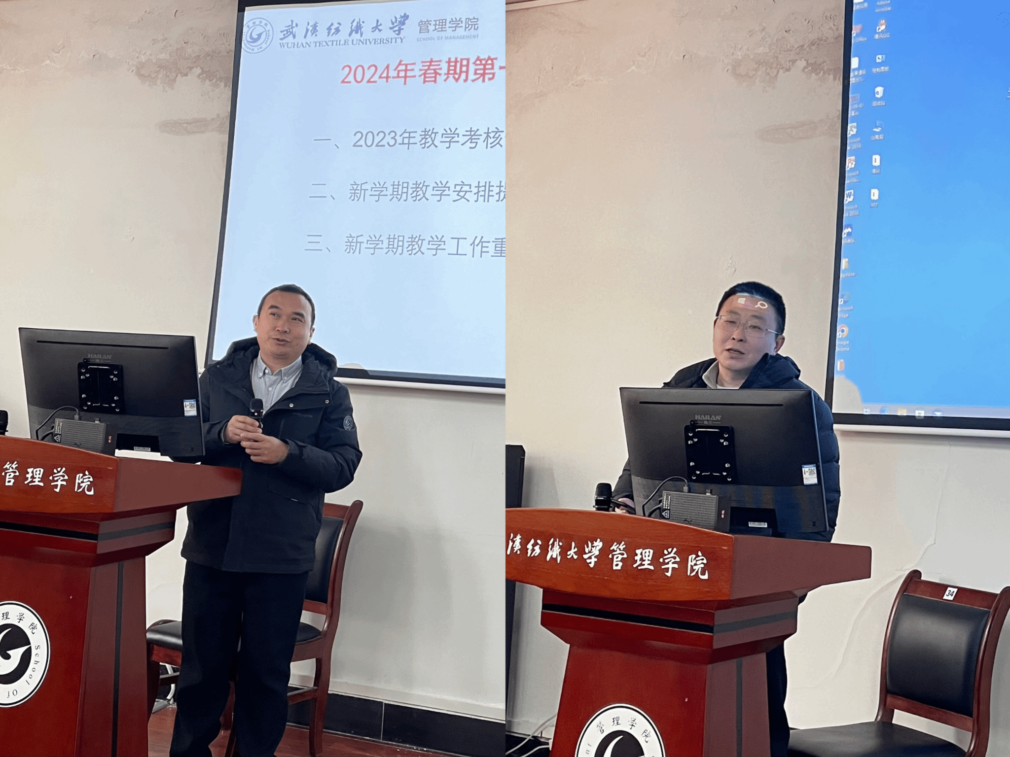 会上,副院长吴锦峰和张飞分别从上学年教学科研考核情况做了工作回顾,并针对新学期教学安排、上好第一课、基金申报、学科竞赛、研究生论文盲审等分管工作进行了重点部署与动员。