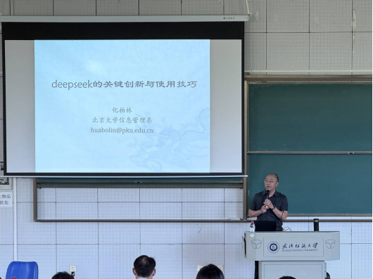化柏林副教授主要从事文本挖掘、大数据情报分析研究,主持多项国家级基金课题,并兼任多个专业委员会委员及期刊审稿专家。化柏林副教授围绕“二进制的计算机如何实现当前智能水平”以及“如何利用DeepSeek等大模型提升工作效率”这两个核心问题展开深入讲解,详细阐述了DeepSeek的发展历程、关键技术与创新之处,分析了其在行业中的地位和社会影响。期间,化柏林副教授特别强调了DeepSeek在国际上的影响力,并通过具体数据和案例进行说明。