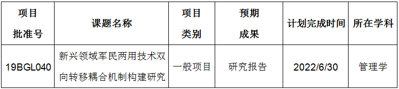 日前,全国哲学社会科学规划办公室公布了2019年国家社科基金项目立项结果。我校太阳集团网tyc9728李小丽教授主持申报的项目《新兴领域军民两用技术双向转移耦合机制构建研究》(批准号:19BGL040)获批立项。