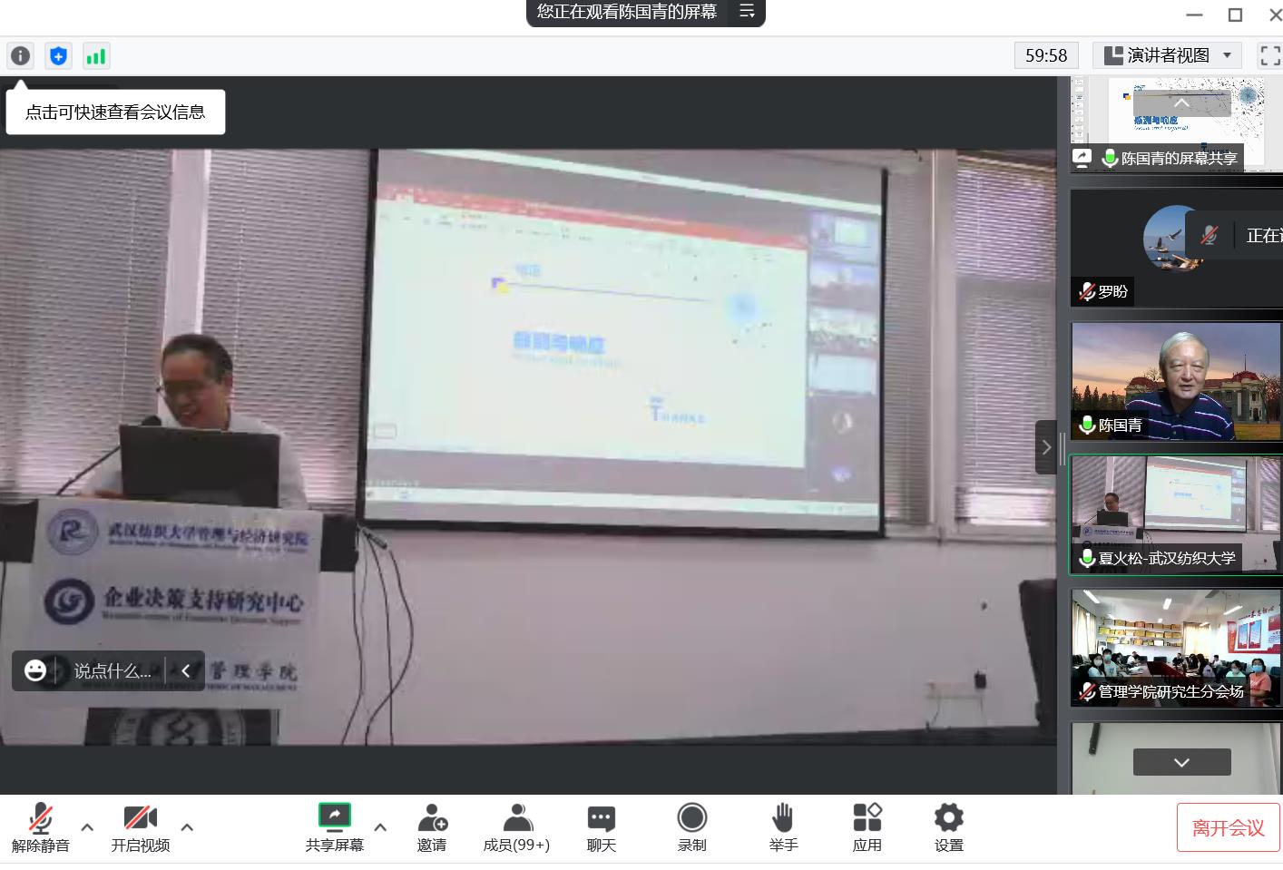 9月15日下午,清华大学资深教授陈国青接受我院邀请作线上讲座,拟通过本次讲座为我院研究生分享数智化背景下的知偏识正洞察—机器学习与用户行为中的偏差问题。本次讲座由夏火松教授主持,太阳集团网tyc9728部分教师出席,全体研究生积极参会。