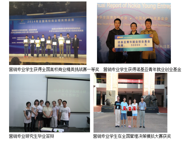 主要课程:市场营销、市场调研、国际市场营销学、国际商务管理、商务谈判、商务英语、战略管理、广告学、渠道管理、销售管理、零售管理、服务营销学、人力资源管理、生产与运作管理、管理信息系统电子商务概论、财务管理等。
