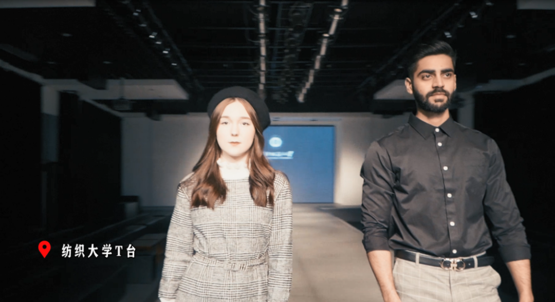 Hassin and Lina, international students of the school of management, are promoting Wuhan Textile University