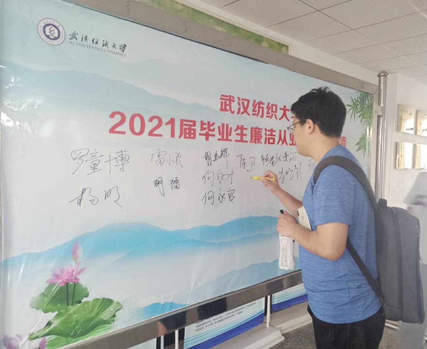 会前,全体与会毕业生党员还在“廉洁从业签名墙”上郑重签署自己的名字。此次座谈会是我校校园廉洁文化活动之一。我校一直注重学生感恩、诚信、廉洁的教育,校纪委、学生工作部、校团委、招生就业处等部门针对毕业生开展了形式多样的廉洁从业教育,为毕业生坚定理想信念、恪守廉洁底线打下了坚实的基础。