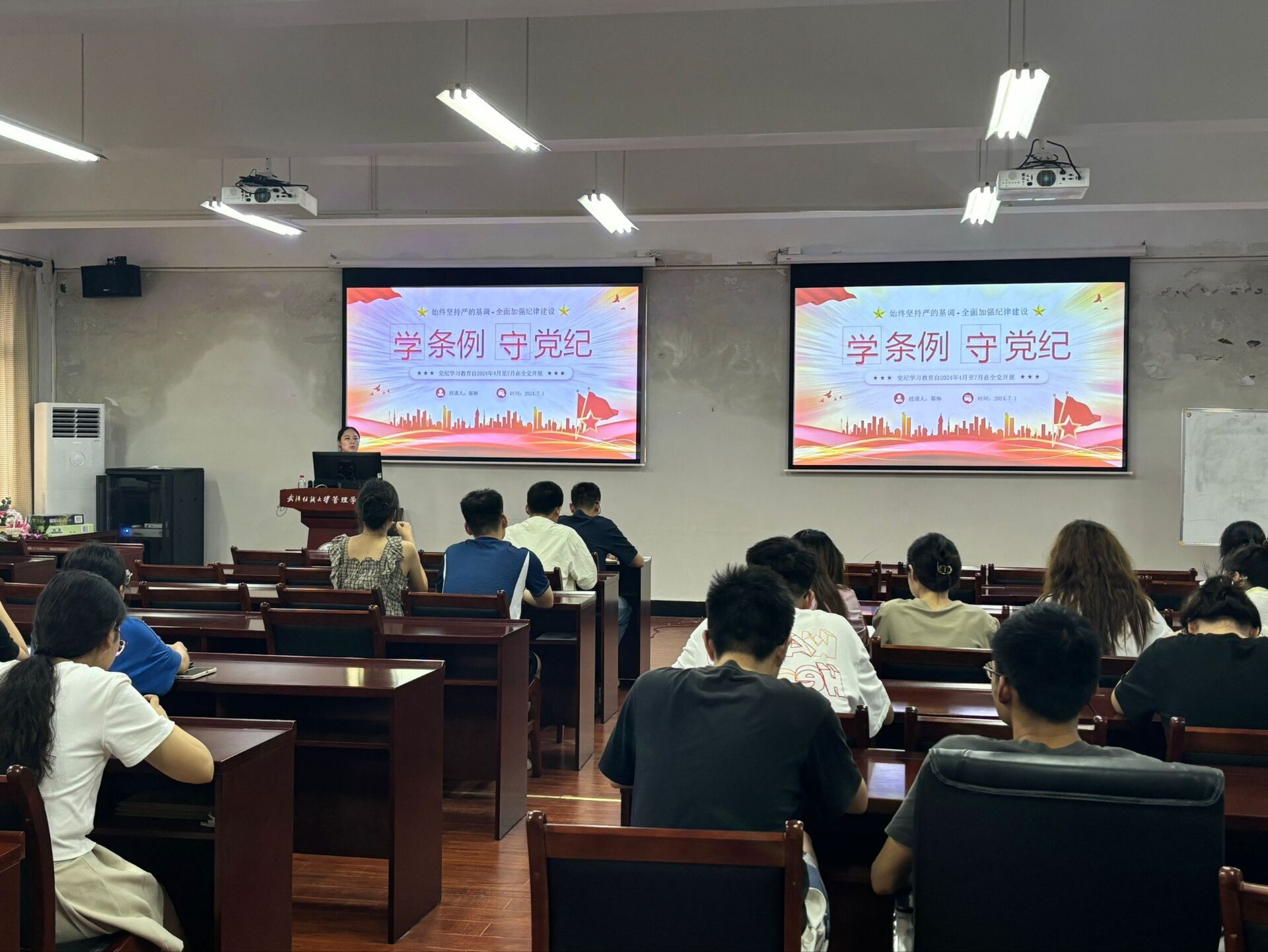 为深入贯彻落实中央关于加强党纪教育的精神,进一步提升支部党员的政治觉悟和纪律意识,6月28日下午,太阳集团网tyc9728数智管理师生混合党支部以“学条例、守党纪”为题开展党纪学习教育,深入学习党的纪律条规,引导党员增强党性修养,自觉维护党的纪律。活动由支部副书记鄢琳主持。